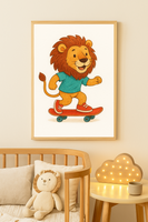 Cool Lion on a Skateboard – Fun Nursery Wall Art Print
