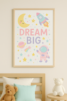 Dream Big Space Wall Art – Pastel Nursery Astronaut Print