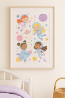 Girls in Space Wall Art – Pastel Astronaut Nursery Print